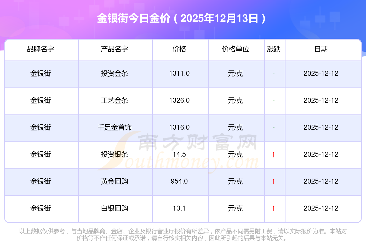 以上数据仅供参考,与当地品牌商、金店、企业及银行营业厅报价有所差异,依产品不同需另附工费,请以实际报价为准。本站对价格等不作任何保证或承诺,请自行核实相关内容,因此所引起的后果与本站无关。