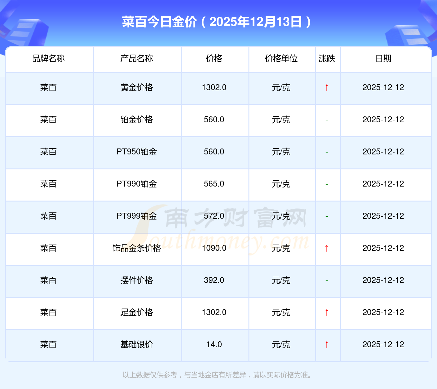 现在菜百黄金价格是多少钱1克_2025年菜百今日金价是多少钱一克,最新菜百查询,2025年12月13日菜百摆件价格现在每克多少钱?最新菜百摆件价格报价公布,一起来看看吧!