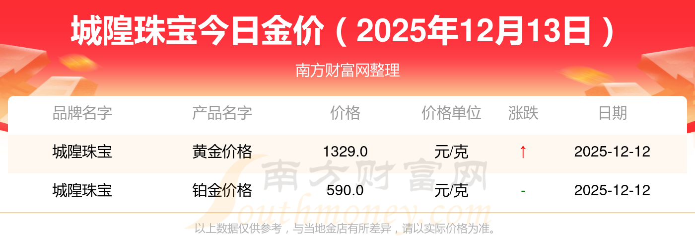 2025年12月13日城隍珠宝黄金今日价格多少一克_城隍珠宝金价实时行情来了,一起来看看吧!
