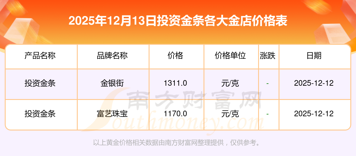 各金店投资金条价格一览表,各金店投资金条价格是多少钱一克?