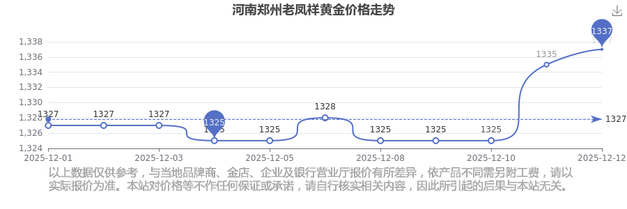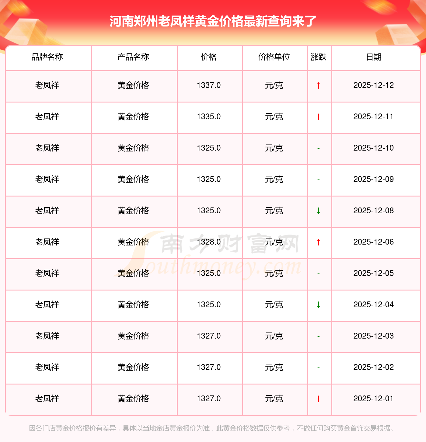 1337.0元/克的黄金价格,是河南郑州老凤祥在 2025年12月14日给出的。