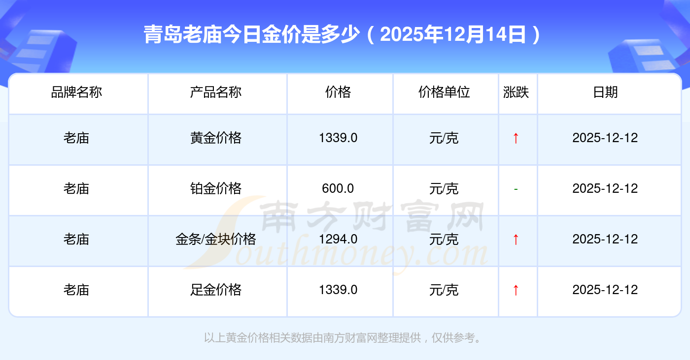 2025年12月14日老庙金条多少钱1克 现在青岛老庙黄金价格查询