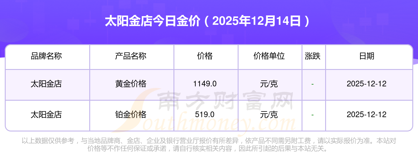 太阳金店金价在今日的具体价位是多少?
