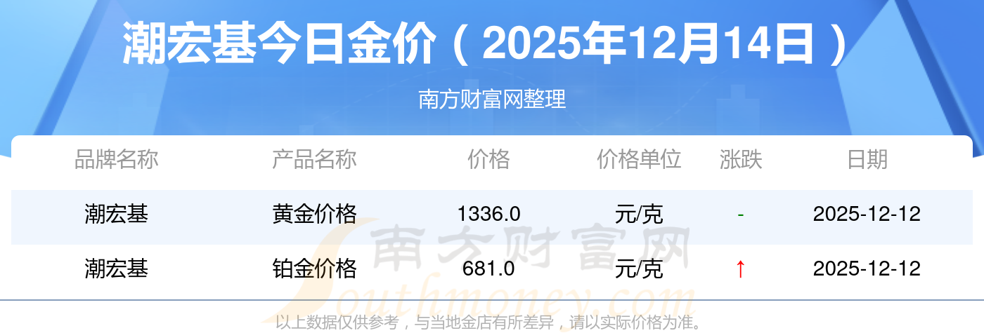 2025年12月14日潮宏基金条多少钱1克 现在江苏南京潮宏基黄金价格查询