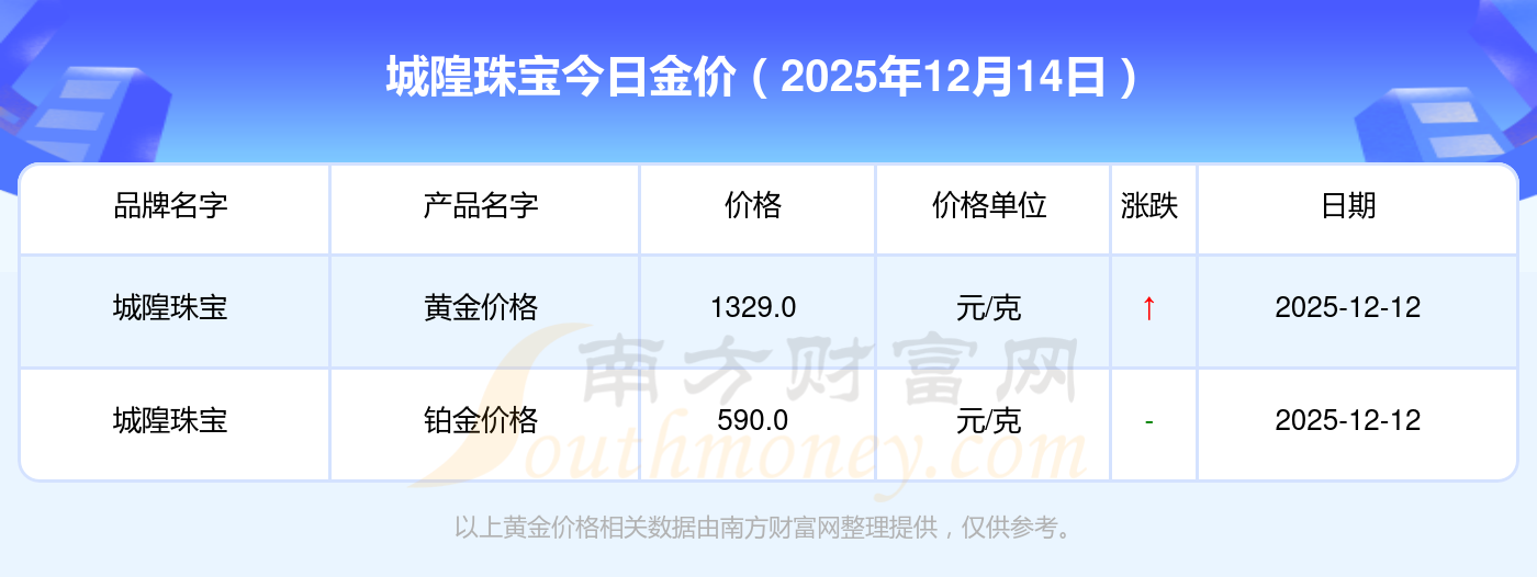 城隍珠宝现在金价多少钱一克?城隍珠宝今天黄金价格多少一克?最新城隍珠宝查询,2025年12月14日城隍珠宝黄金价格现在每克多少钱?最新城隍珠宝黄金价格报价公布,一起来看看吧!