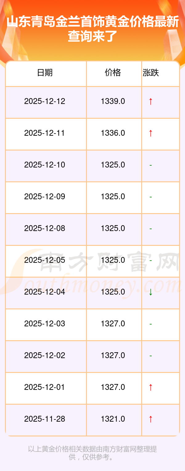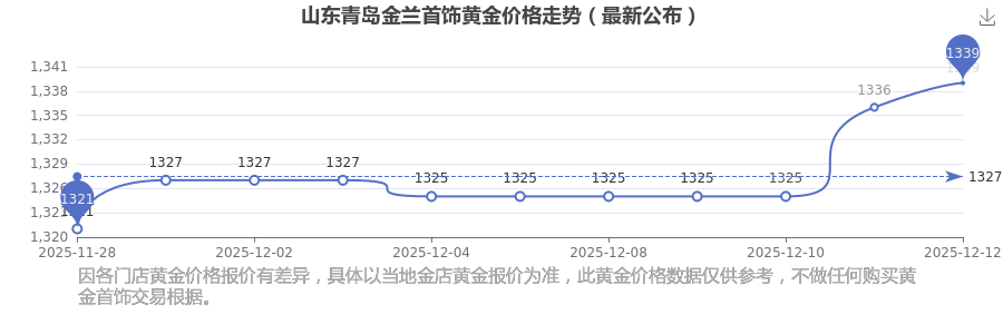 1339.0元/克的黄金价格,是山东青岛金兰首饰在 2025年12月14日给出的。