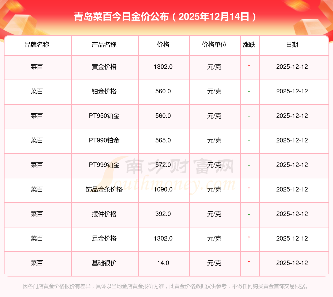 青岛菜百金价今日价格最新_青岛菜百黄金多少钱一克2025年12月14日,随小编来了解一下详情。