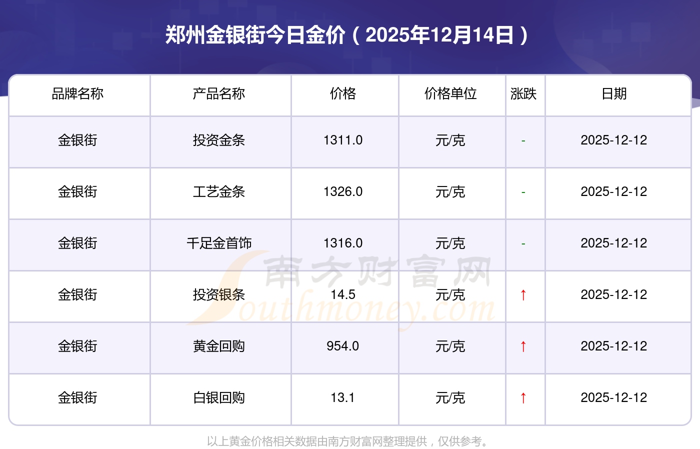 今日金价多少一克_2025年12月14日郑州金银街黄金价格查询表来了,随小编来了解一下详情。