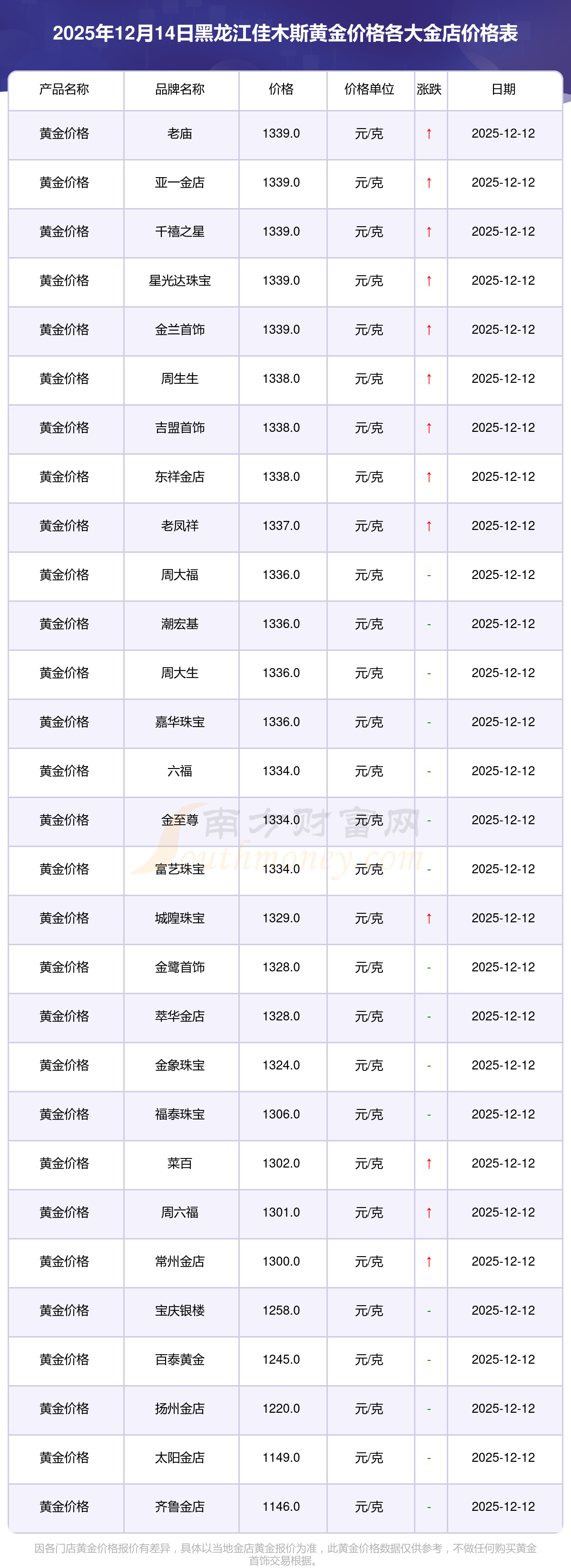 一、黑龙江佳木斯各金店黄金价格表最新是多少钱,每克黄金在市面上的价格是怎样的,今天黄金最新的克价详情表内容是怎样的