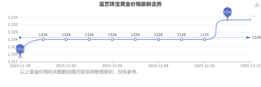 今日黄金价格具体是多少?现在一克黄金卖多少钱?作为优良导电导热材料的黄金,具有良好的导热特性。它在电子工业中的特殊电路设计中常被应用,因为化学稳定性高、抗氧化性强,能制作高精度电子元件。今日富艺珠宝 黄金价格的最新定价为1334.0元/克。