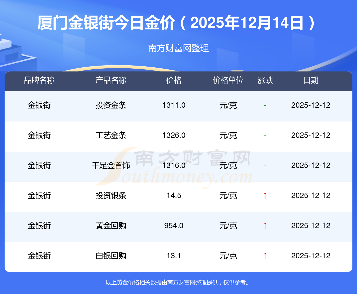 2025年12月14日厦门金银街黄金一克的市场行情价是多少?黄金价格1336.0元/克,铂金价格681.0元/克,黄金价格1337.0元/克,铂金价格650.0元/克,黄金价格1339.0元/克,铂金价格600.0元/克,黄金价格1338.0元/克,铂金价格681.0元/克,饰品金价(内地)1336.0元/克,黄金饰品(香港)47410.0,铂金价格(香港)19550.0。