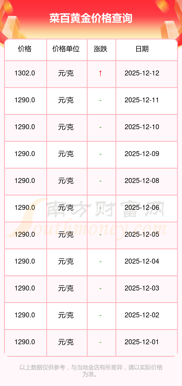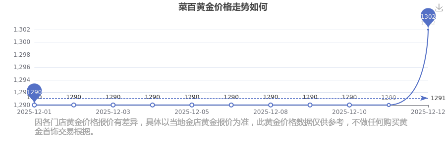今天黄金价格行情如何?现在一克黄金的售价是多少?一般情况下黄金每克的价位是多少左右?菜百 黄金价格今日最新的价位是1302.0元/克。