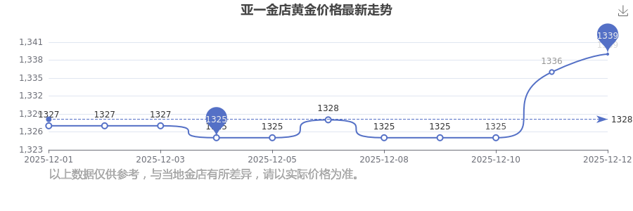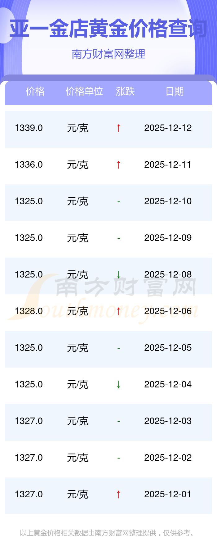 今日亚一金店黄金价格最新价格为1339.0元/克。