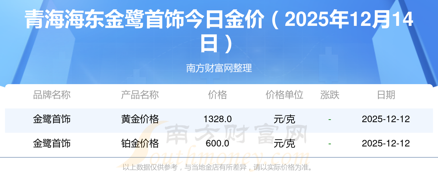 今天黄金价格是多少?现在黄金一克的价钱是怎样的?2025年12月14日青海海东金鹭首饰一克黄金对应的价格是多少?黄金价格1336.0元/克,铂金价格681.0元/克,黄金价格1337.0元/克,铂金价格650.0元/克,黄金价格1339.0元/克,铂金价格600.0元/克,黄金价格1338.0元/克,铂金价格681.0元/克,饰品金价(内地)1336.0元/克,黄金饰品(香港)47410.0,铂金价格(香港)19550.0。