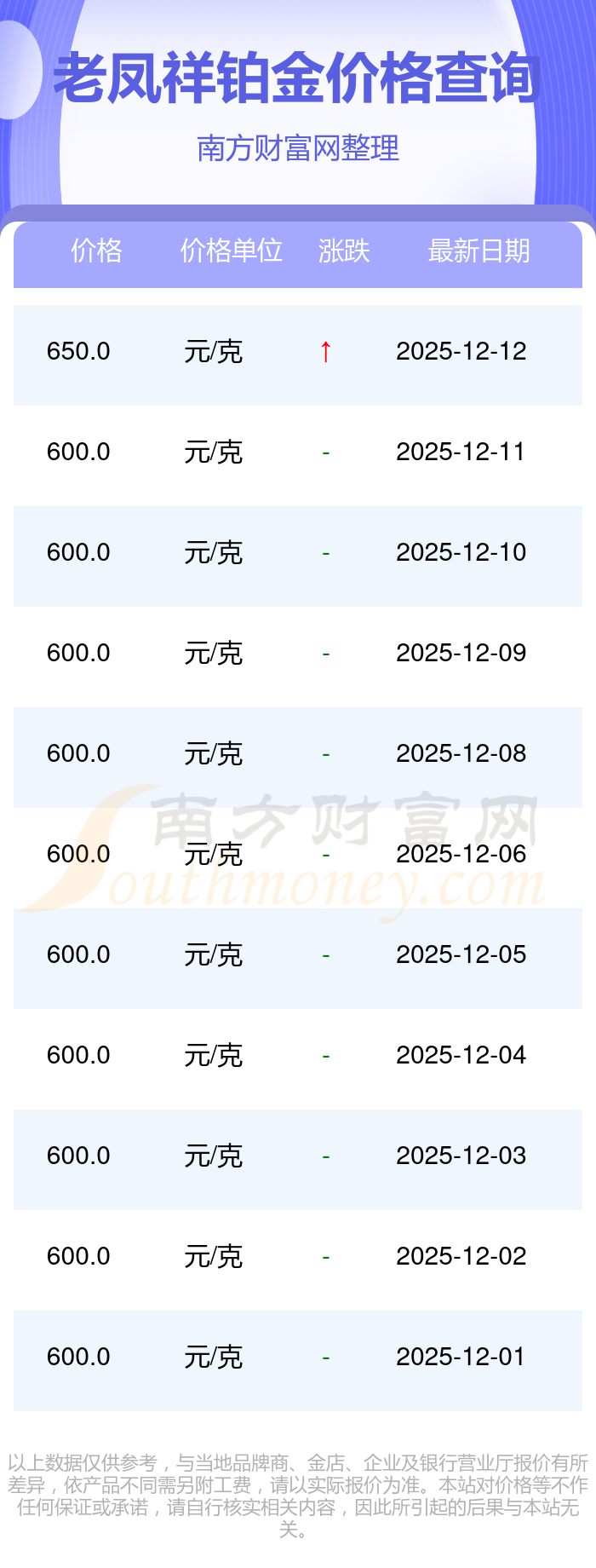 以上数据仅供参考,与当地品牌商、金店、企业及银行营业厅报价有所差异,依产品不同需另附工费,请以实际报价为准。本站对价格等不作任何保证或承诺,请自行核实相关内容,因此所引起的后果与本站无关。