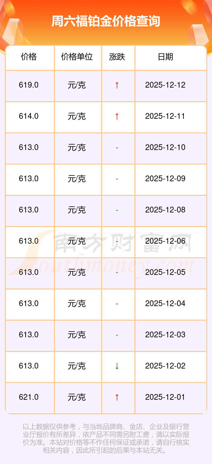 请问,今日一克铂金的价格为多少呀?周六福铂金价格最新是多少?今日每克铂金的定价为多少?