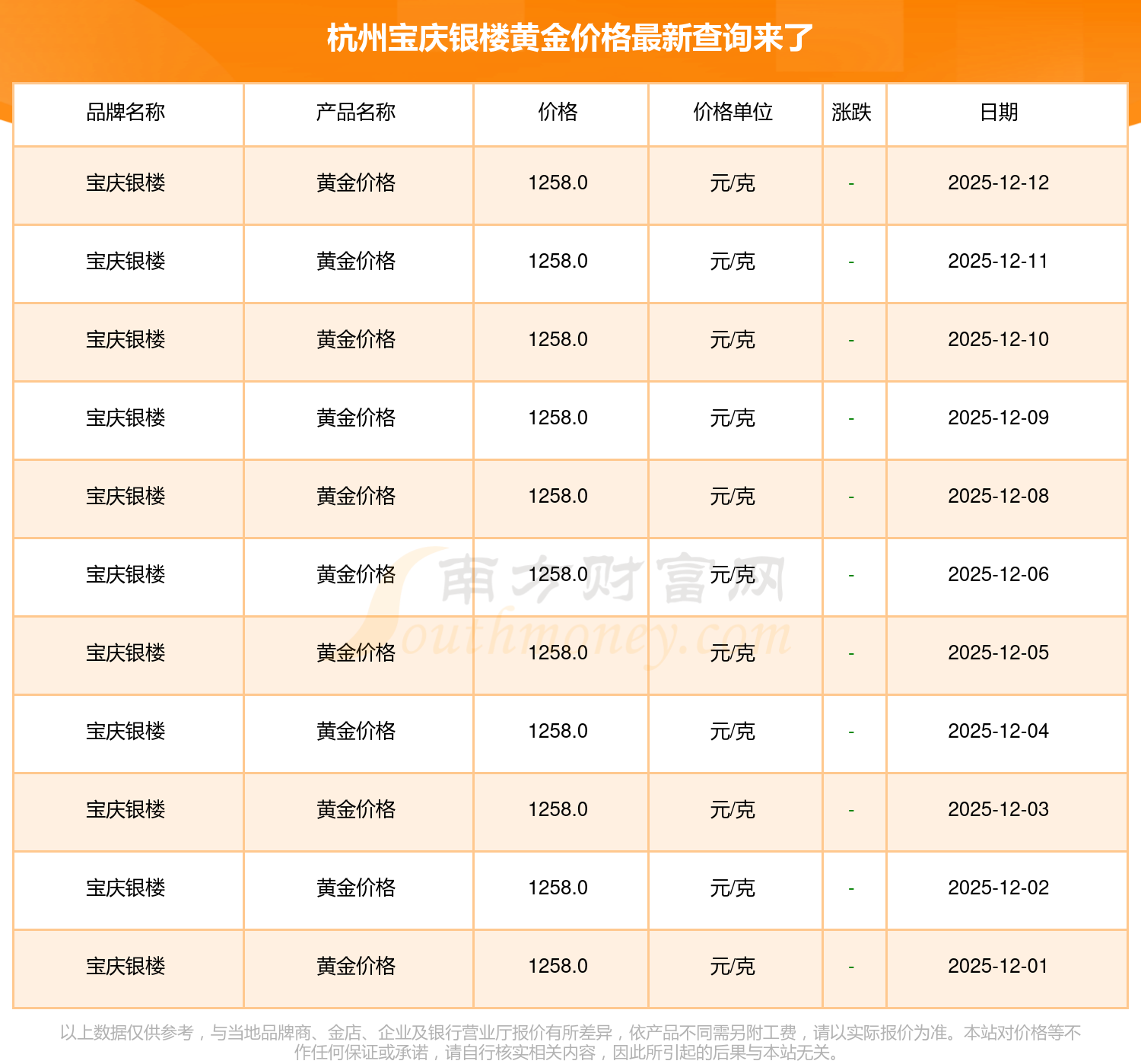 今日(2025年12月14日),1258.0元/克是杭州宝庆银楼黄金价格的价格标准。