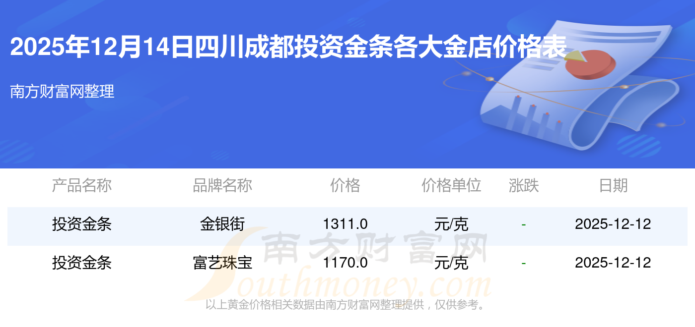今天是2025年12月14日,四川成都周大福、周大福、老凤祥、老凤祥、老庙、老庙、周生生、周生生、周大福、周大福、周大福等各大金店品牌投资金条最新价格如下:周大福1336.0元/克、周大福681.0元/克、老凤祥1337.0元/克、老凤祥650.0元/克、老庙1339.0元/克、老庙600.0元/克、周生生1338.0元/克、周生生681.0元/克、周大福1336.0元/克、周大福47410.0、周大福19550.0。