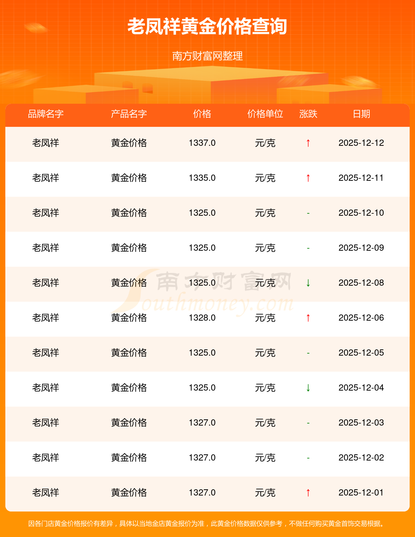 1337.0元/克是老凤祥在今日给出的 黄金价格最新价格。