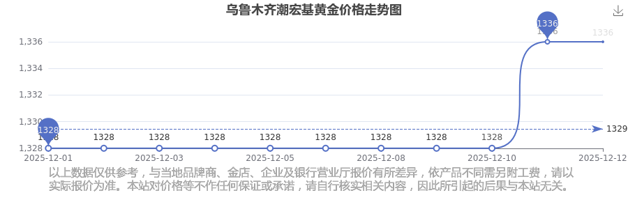 今日乌鲁木齐潮宏基黄金价格最新为:1336.0元/克。