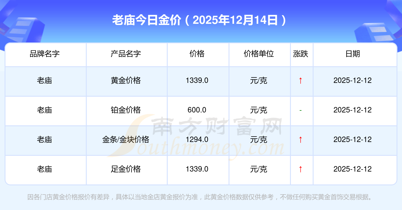 2025年12月14日老庙金条多少钱1克 现在呼和浩特老庙黄金价格查询