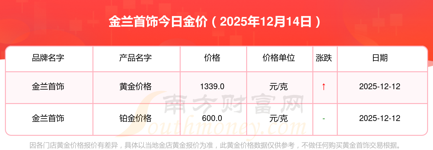 现在金兰首饰黄金价格是多少钱1克_2025年金兰首饰今日金价是多少钱一克,最新金兰首饰查询,2025年12月14日金兰首饰黄金价格现在每克多少钱?最新金兰首饰黄金价格报价公布,一起来看看吧!