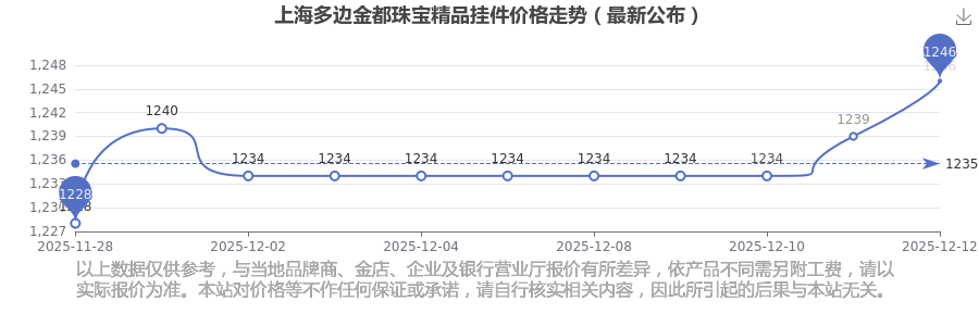 2025年12月14日,今日上海多边金都珠宝精品挂件价格:1246.0元/克。