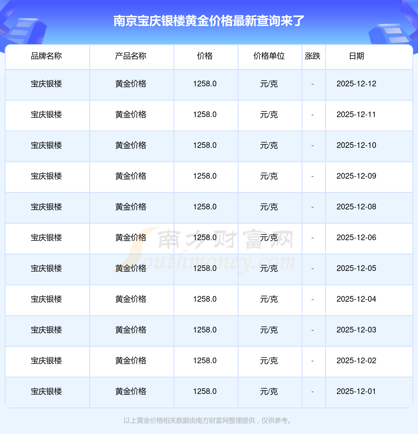 南京宝庆银楼黄金价格现在一克多少钱?今天购买一克黄金需要多少钱?今日南京宝庆银楼黄金价格查询,于 2025年12月14日,南京宝庆银楼黄金价格的克价为1258.0元/克。