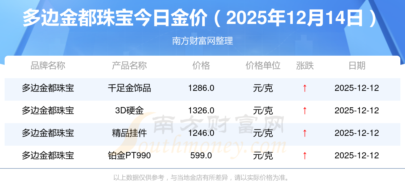 现在多边金都珠宝黄金价格是多少钱1克_2025年多边金都珠宝今日金价是多少钱一克,最新多边金都珠宝查询,2025年12月14日多边金都珠宝精品挂件现在每克多少钱?最新多边金都珠宝精品挂件报价公布,一起来看看吧!
