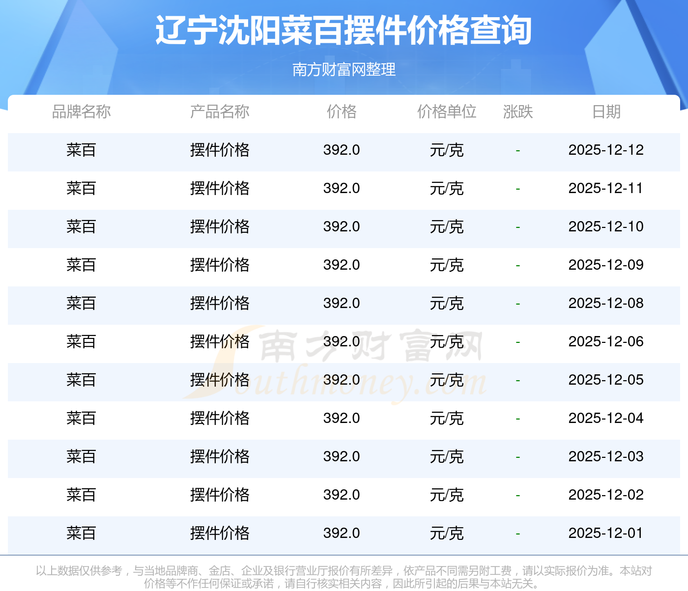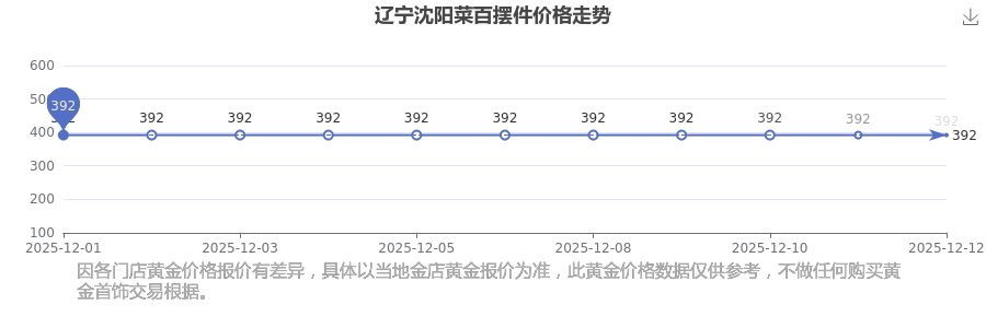 今日(2025年12月14日),392.0元/克是辽宁沈阳菜百摆件价格的价格标准。