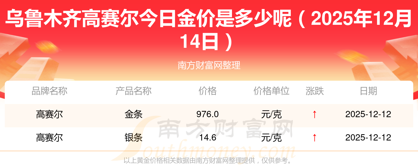 乌鲁木齐高赛尔黄金价格多少一克