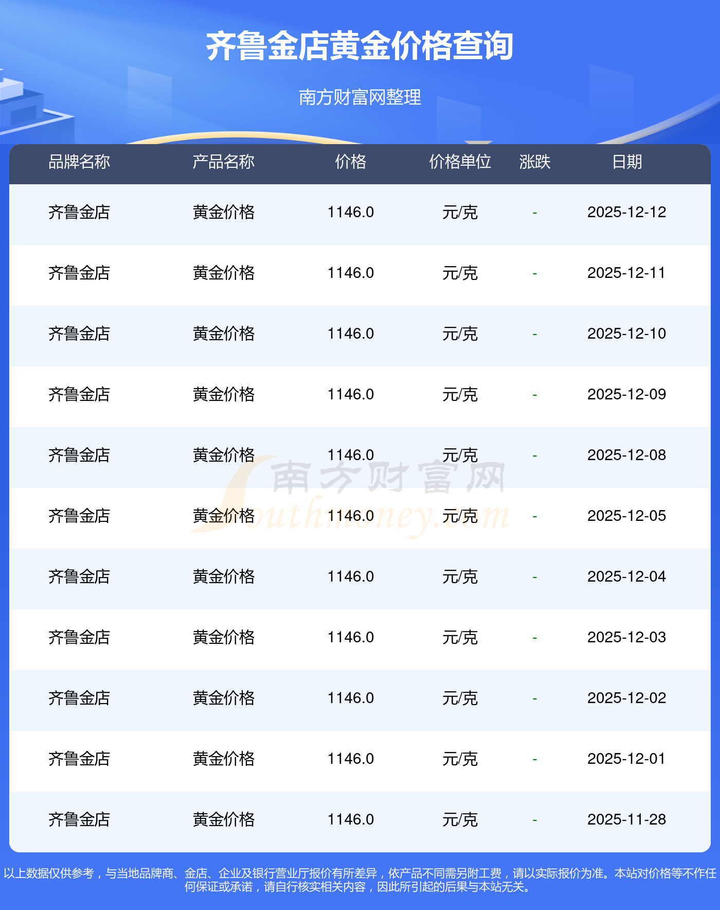 今天黄金价格是多少?现在黄金一克的价钱是怎样的?黄金每一克的价格通常来说是多少?据了解,今日齐鲁金店 黄金价格的最新价格为1146.0元/克。