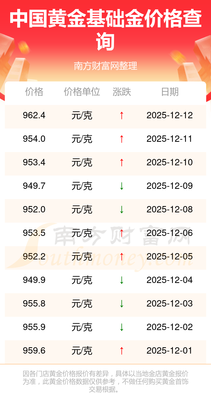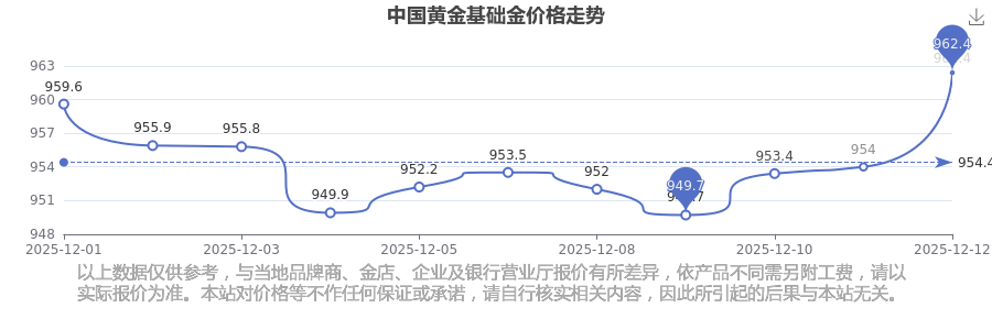 中国黄金 基础金价今日最新的价位是962.4元/克。