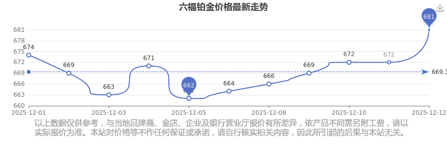 今日六福 铂金价格的最新定价为681.0元/克。