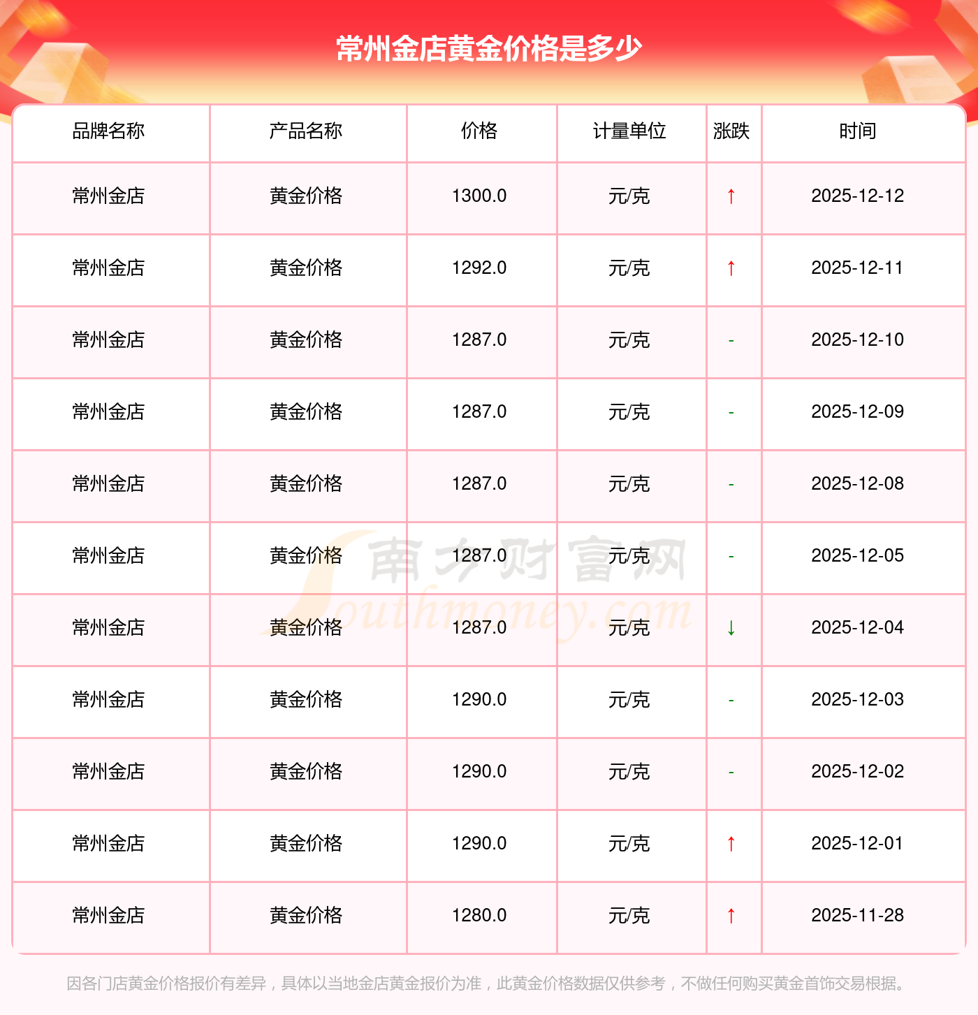 今日黄金售价是多少呢?此刻每克黄金价钱怎样?作为优良的导电导热材料,黄金有良好的导热特性。电子工业中的特殊电路设计经常用到它,由于它化学稳定性高、抗氧化性强,能制作高精度电子元件。今日(2025年12月14日)常州金店黄金价格的价格为1300.0元/克。