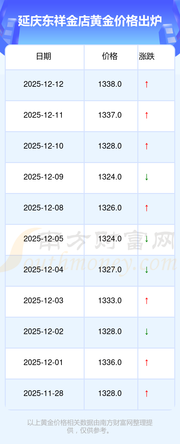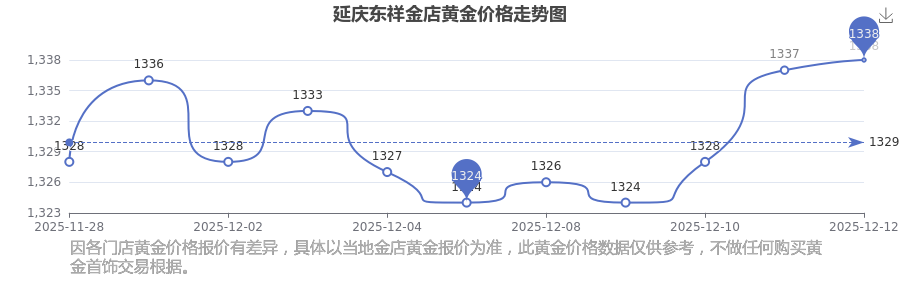 于 2025年12月14日,延庆东祥金店黄金价格的克价为1338.0元/克。