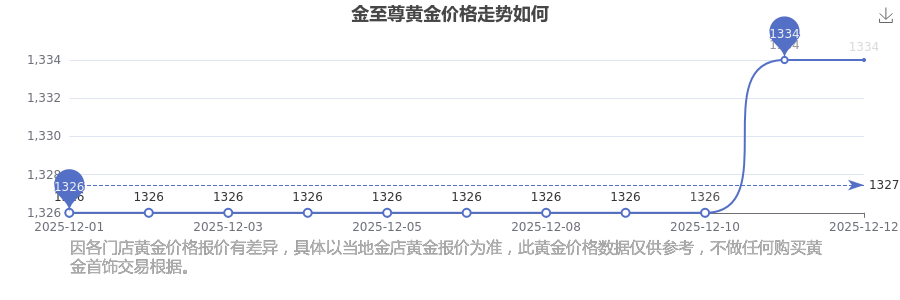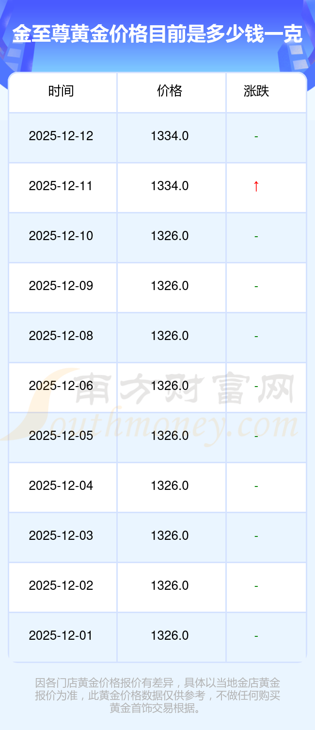 今日金至尊 黄金价格最新的市场标价为1334.0元/克。