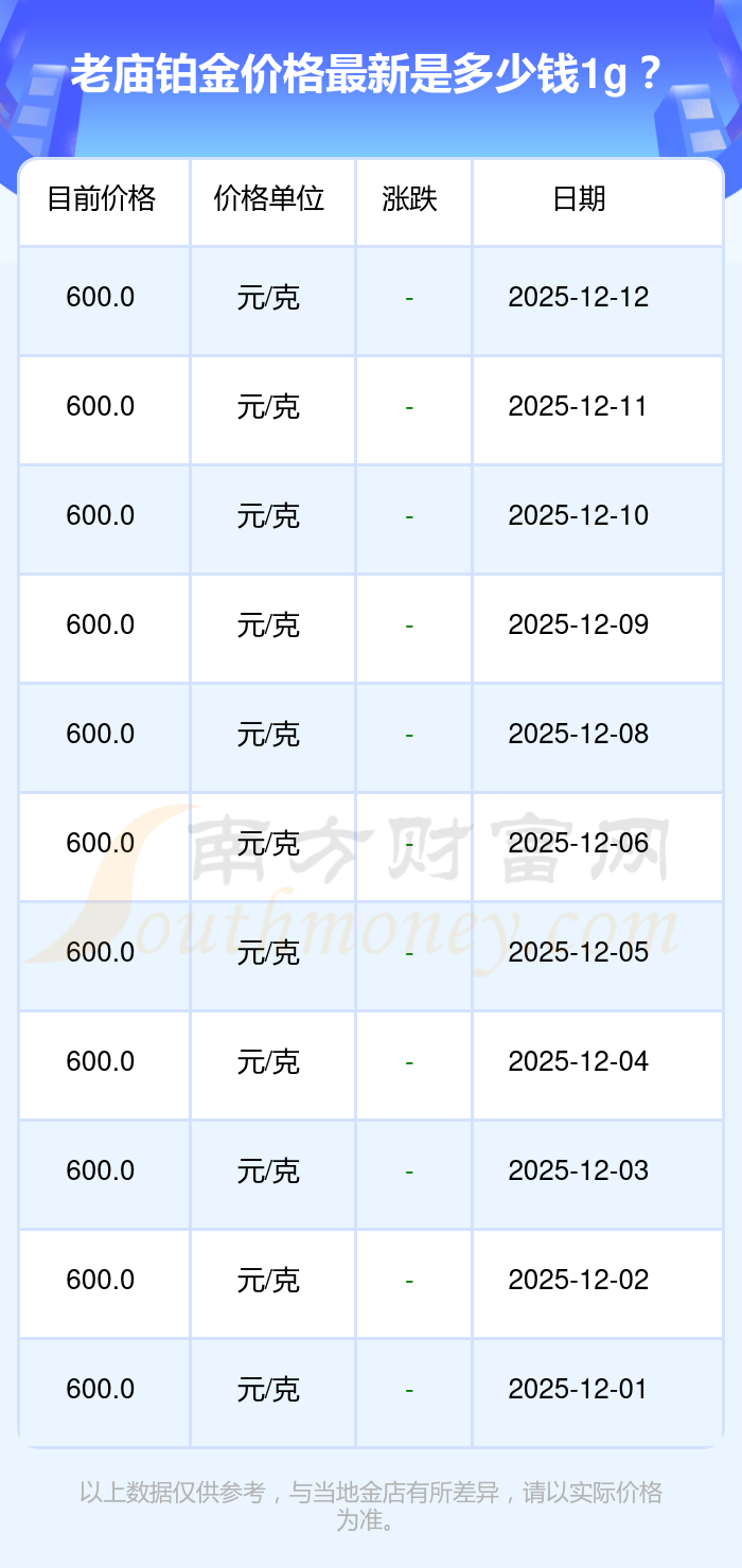 当下,老庙 铂金价格今日的最新价格是600.0元/克。