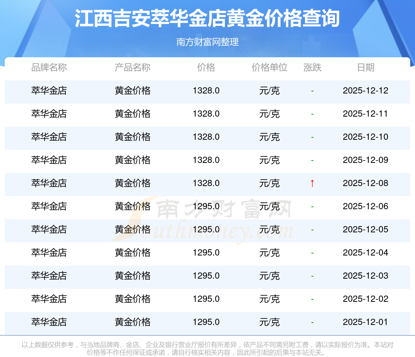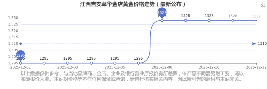 今日(2025年12月14日),江西吉安萃华金店黄金价格的价格是1328.0元/克。