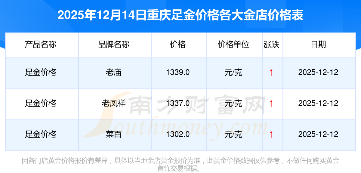 一、足金价格今日价格表,重庆各大品牌金店今日足金价格多少钱一克(2025年12月14日)