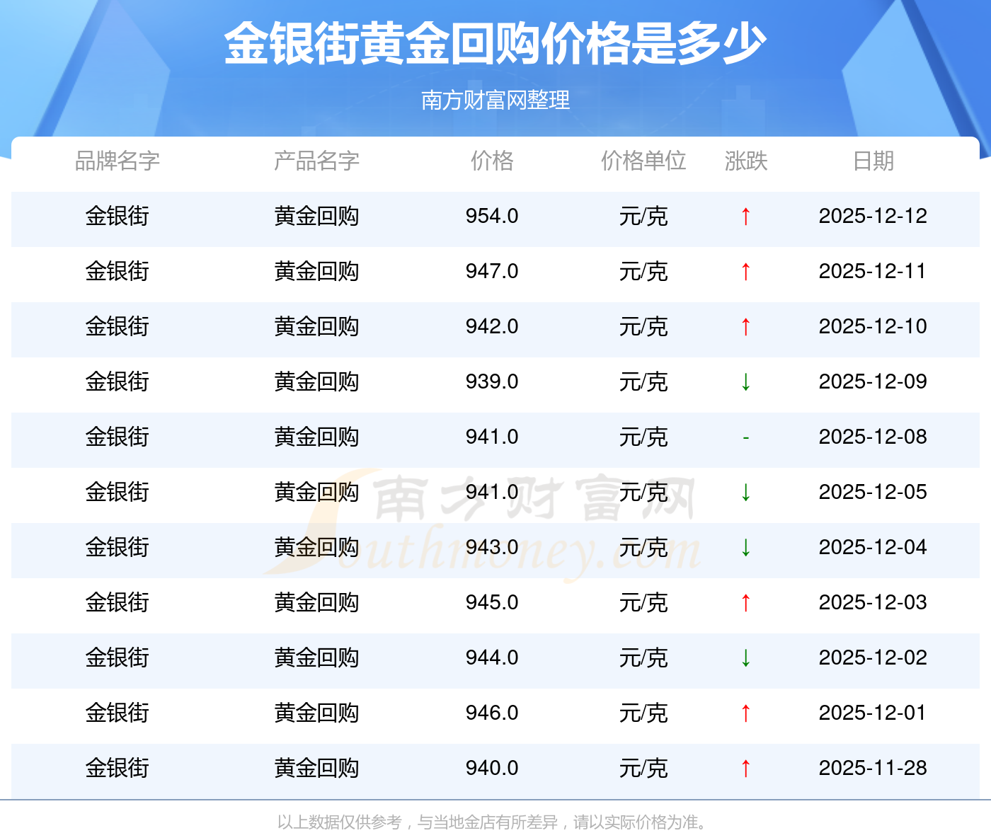 2025年12月14日金银街现在黄金回购价格多少一克呢?(今日黄金回购价格表),一起来看看吧!