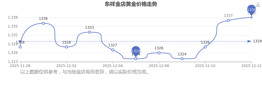 东祥金店今日黄金价格的最新标价为1338.0元/克。