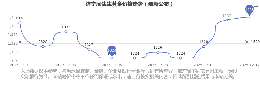 2025年12月14日济宁周生生黄金价格:1338.0元/克。