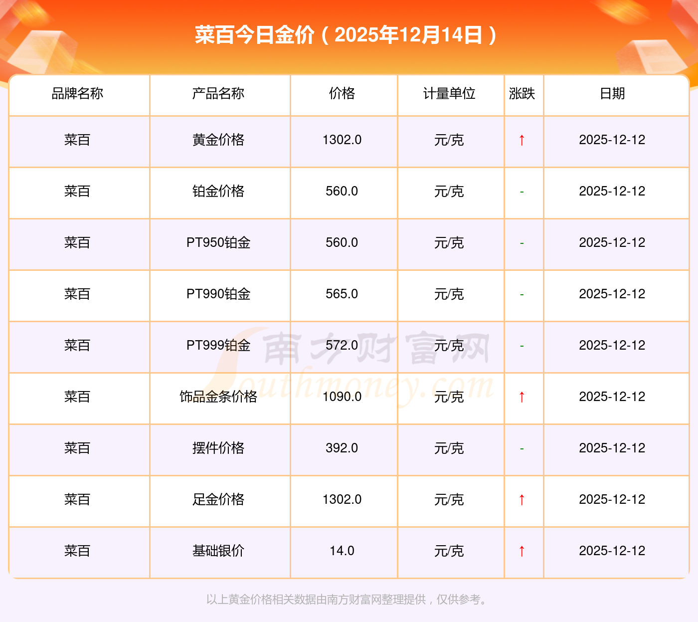 菜百今日金价查询