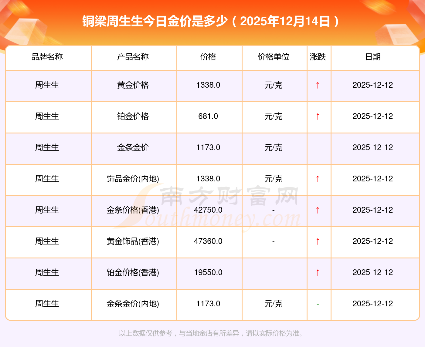 以上数据仅供参考,与当地金店有所差异,请以实际价格为准。