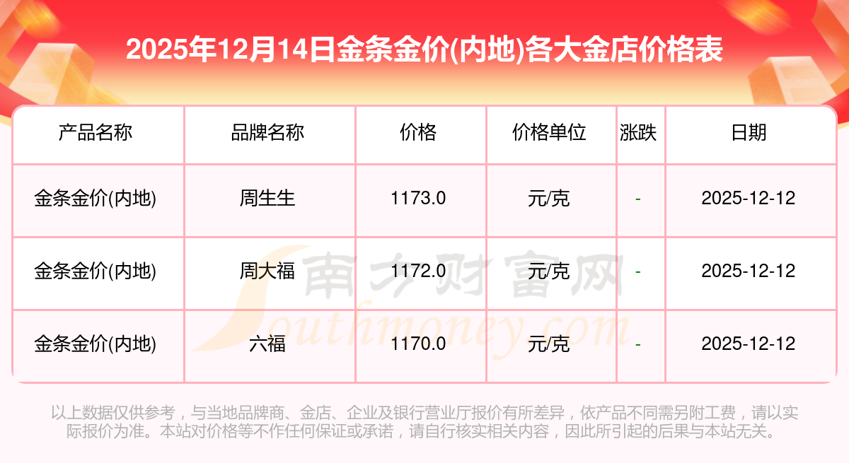 今日金条金价(内地)来了_2025年12月14日各金店金条金价(内地)多少1克?