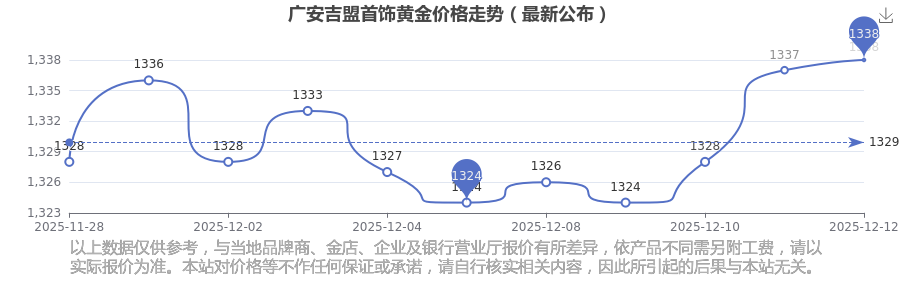 2025年12月14日,广安吉盟首饰黄金价格每克的价值量定格在1338.0元/克。