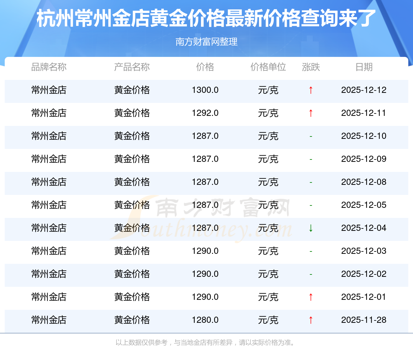 以上数据仅供参考,与当地金店有所差异,请以实际价格为准。
