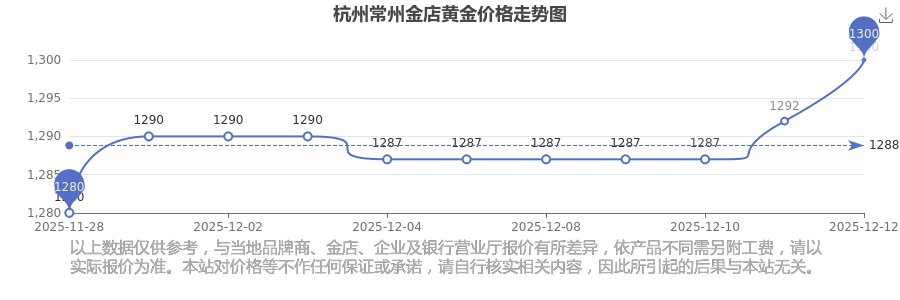 2025年12月14日,杭州常州金店所售黄金价格,其价格设定为 1300.0元/克。