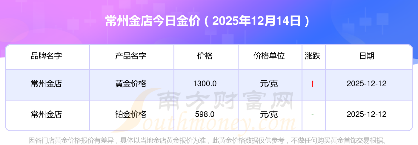 常州金店金条价格今日最新价2025实时查询_常州金店现在金价格是多少钱一克,2025年12月14日常州金店黄金价格现在每克多少钱?最新常州金店黄金价格报价公布,一起来看看吧!